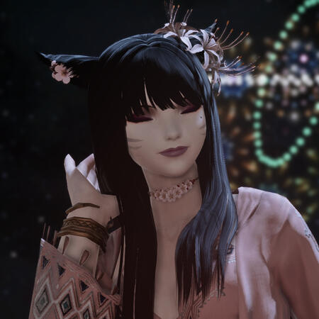She misses just adventuring. She often fondly looks back on her adventures with Estinien, Ysayle, and Alphinaud and told a lot of those stories while on the first, because it was primarily just that. Adventuring.The flowers she wears in her hair are a gift from Tyki. He spotted them in a shop in Gridania and preserved them before making them into a hair accessory for Kanda.She's very protective of Tyki even though she knows he's capable of taking care of himself. She's afraid of losing him.